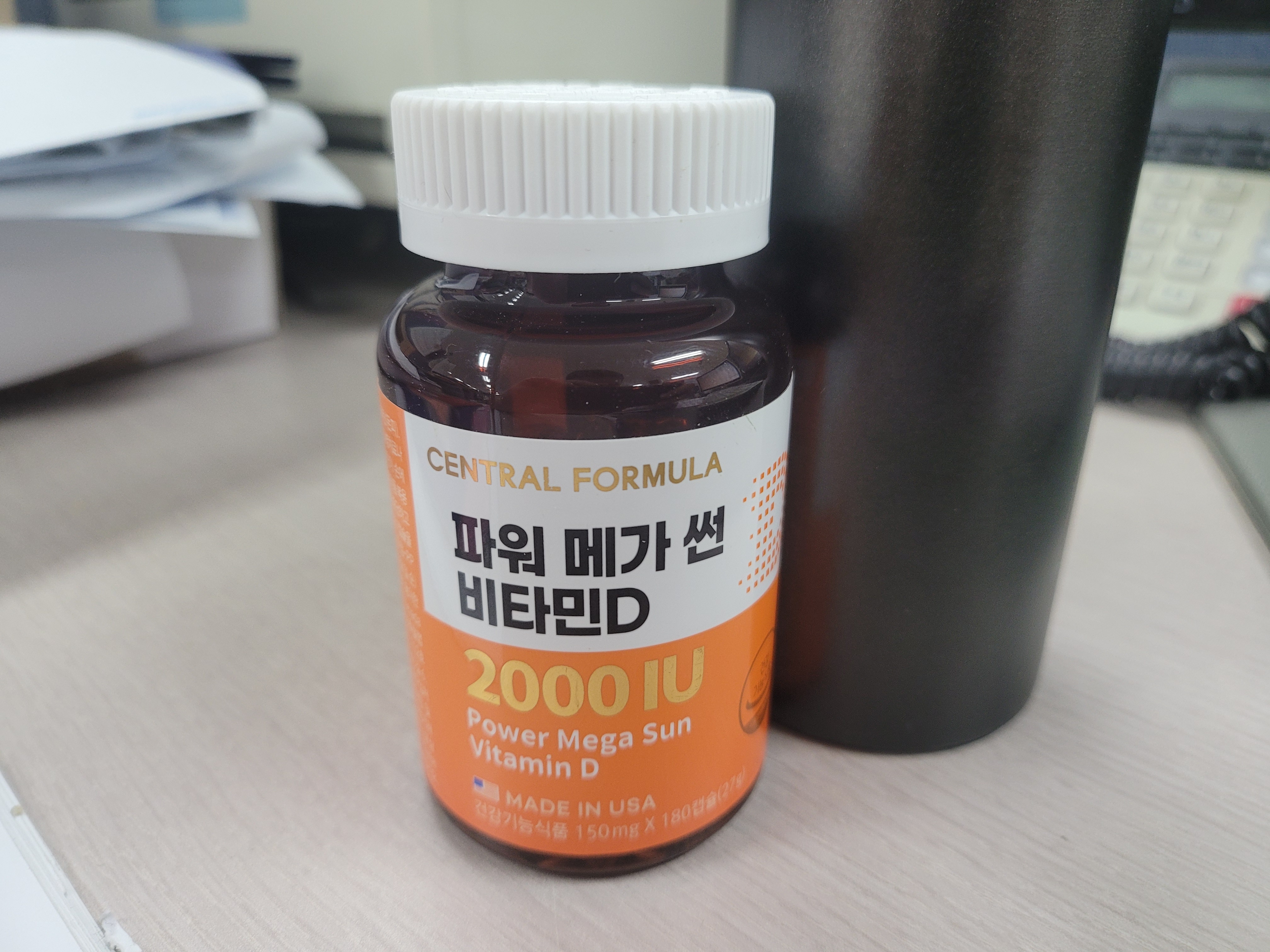최근에 구매한 파워메가썬 비타민D를 챙겨왔어요.